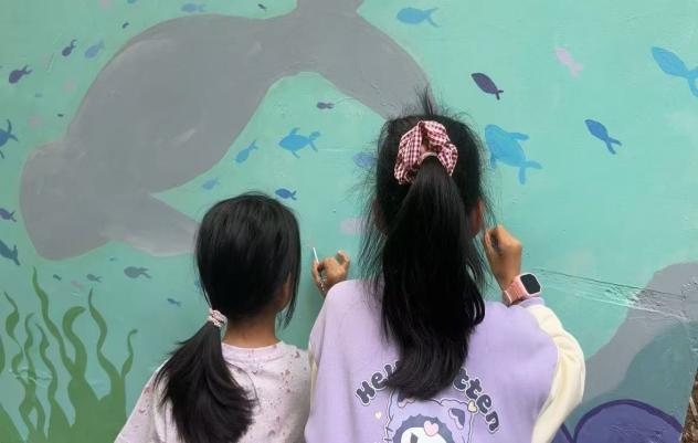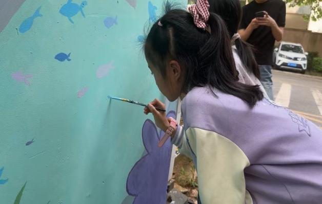 这次墙绘,不只是为社区添上了一抹来自长江的灵动色彩,更悄然拉近了居民与生态保护的距离。路过的居民会不自觉停下脚步,静静凝望墙面上的江豚与浪花;放学的孩子则围在墙前,叽叽喳喳讨论着画里的小鱼和水草;就连散步的老人,也会驻足片刻,聊起记忆里江边的景象。原本遥远的“长江生态保护”,就这样变成了日常里触手可及的风景、邻里间随口可聊的话题,让环保意识在潜移默化中浸润社区,慢慢改变着这里的生态氛围。